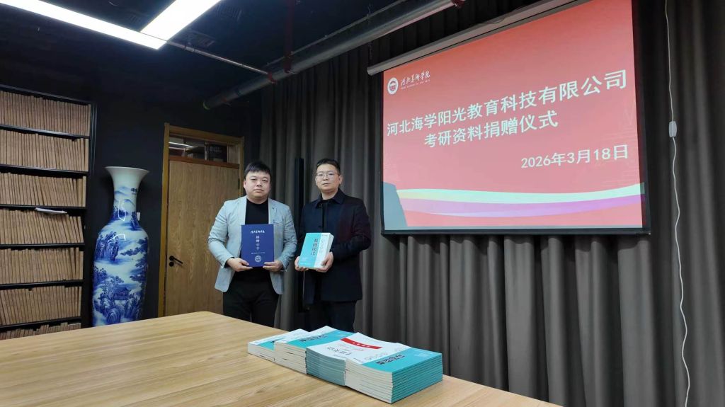 3月18日下午,河北海学阳光教育科技有限公司考研资料捐赠仪式在河北美术学院2号图书馆报刊区举行。河北海学阳光教育科技有限公司校长宋杰、图书馆馆长李世新及考研学生代表30余人参加。仪式由图书馆副馆长黄卉子主持。