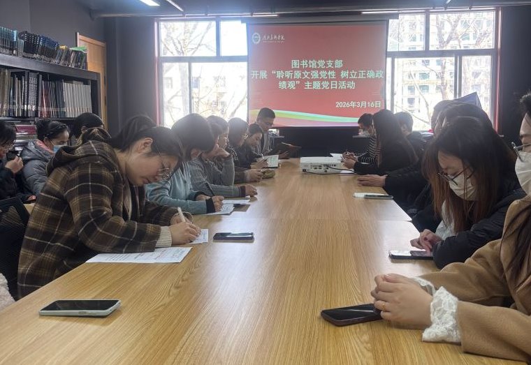 为深入学习贯彻习近平新时代中国特色社会主义思想,强化党员党性修养,引导全体党员树立和践行正确政绩观,3月16日,图书馆党支部组织开展“学习原文强党性 树立正确政绩观”主题党日活动,支部全体党员参加活动。